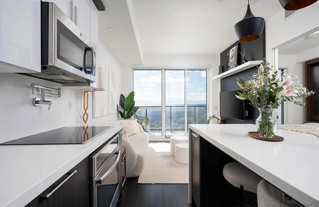 The apartment lies in the Etobicoke district of Toronto, about 10 minutes by car from Bloor Street West.