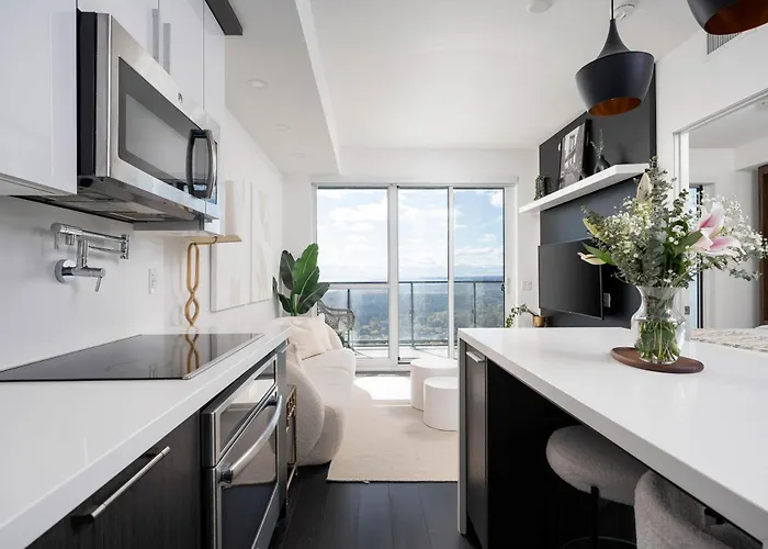 Along with self-catering amenities like a fully-equipped kitchen, this accommodation also offers an outdoor dining area. Elegant Sunset Lake View Suite With Parking is only a 14-minute drive to Billy Bishop Toronto City airport. Guests can take a dip in a private pool to relax after a long day.